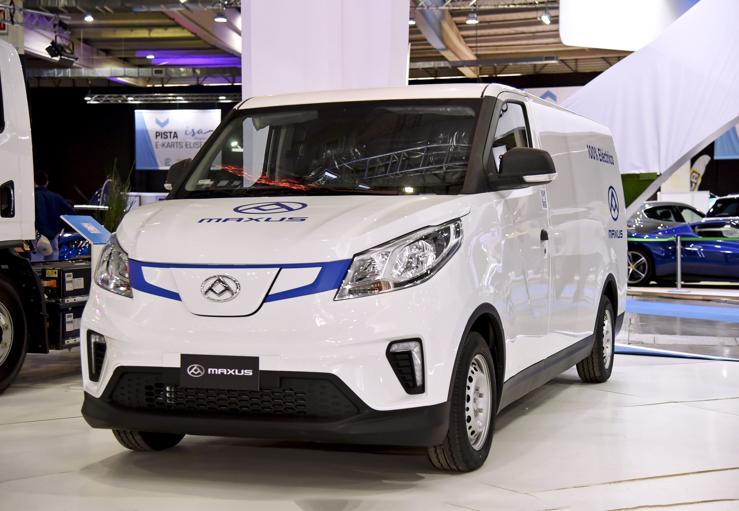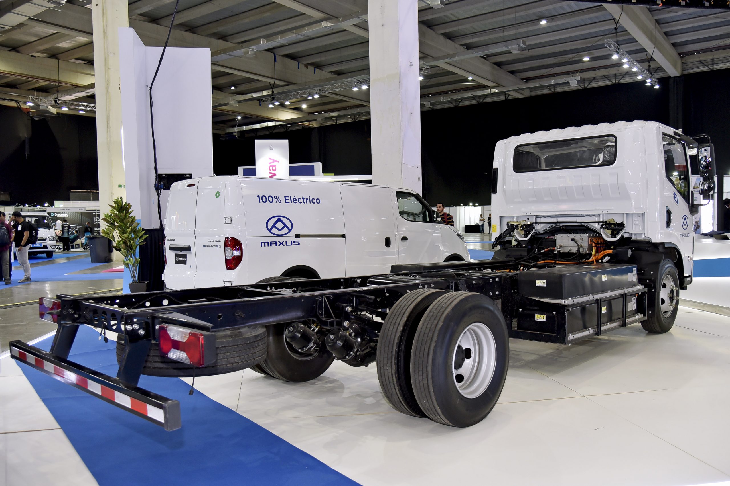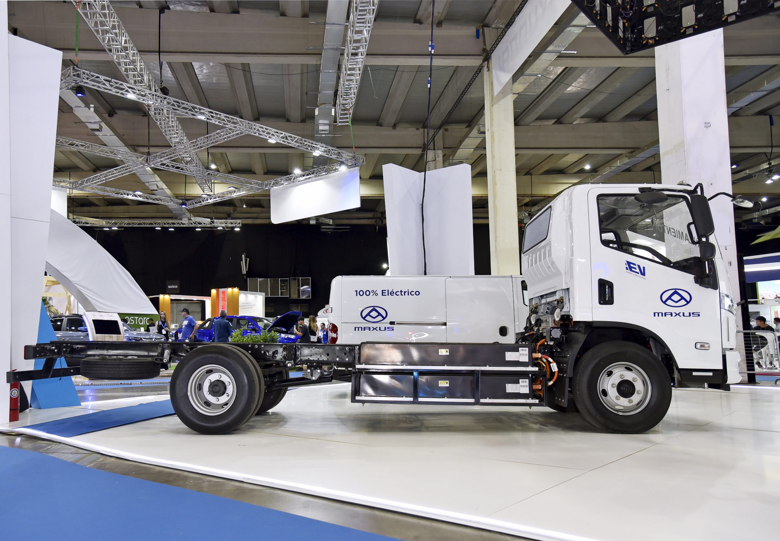 La compañía informó que su catálogo estará integrado en el corto plazo por ocho camiones totalmente eléctricos, entre ellos el Maxus ET-916, variante que estará exhibida en la muestra de energías renovables y sostenibilidad. El vehículo tipo chasis cabina presenta una autonomía de hasta 300 kilómetros y una capacidad de carga de 4.765 kilos. Entre otras características, ofrece una potencia máxima de 163 CV y un par motor de 750 Nm, además de un peso bruto vehicular de 8.500 kilos y una longitud de 6.958 mm.