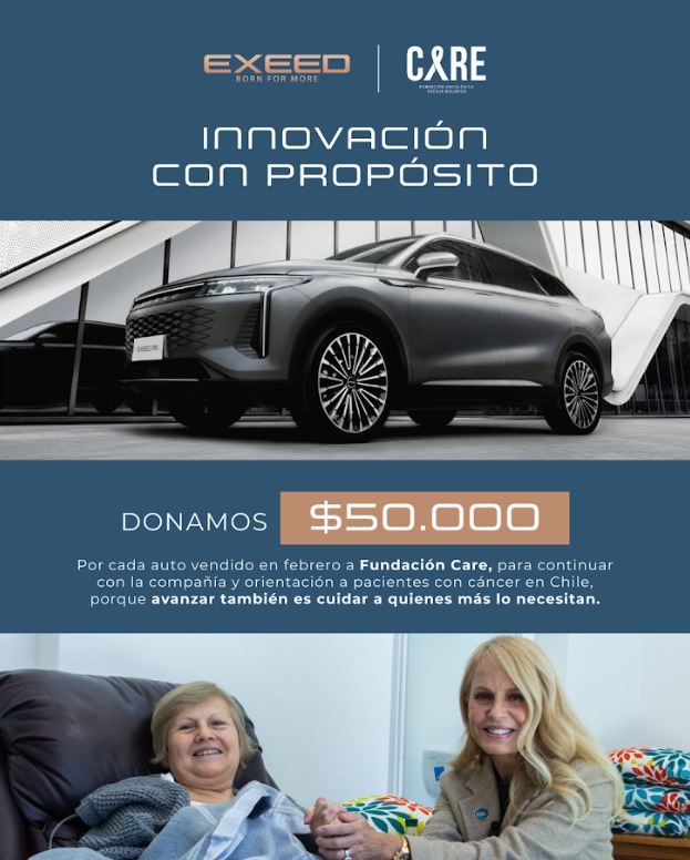 En línea con su compromiso con la innovación con propósito y el impacto positivo en la sociedad, la marca automotriz EXEED concretó una alianza solidaria con Fundación CARE, organización dedicada a acompañar y orientar a pacientes con cáncer en Chile.
