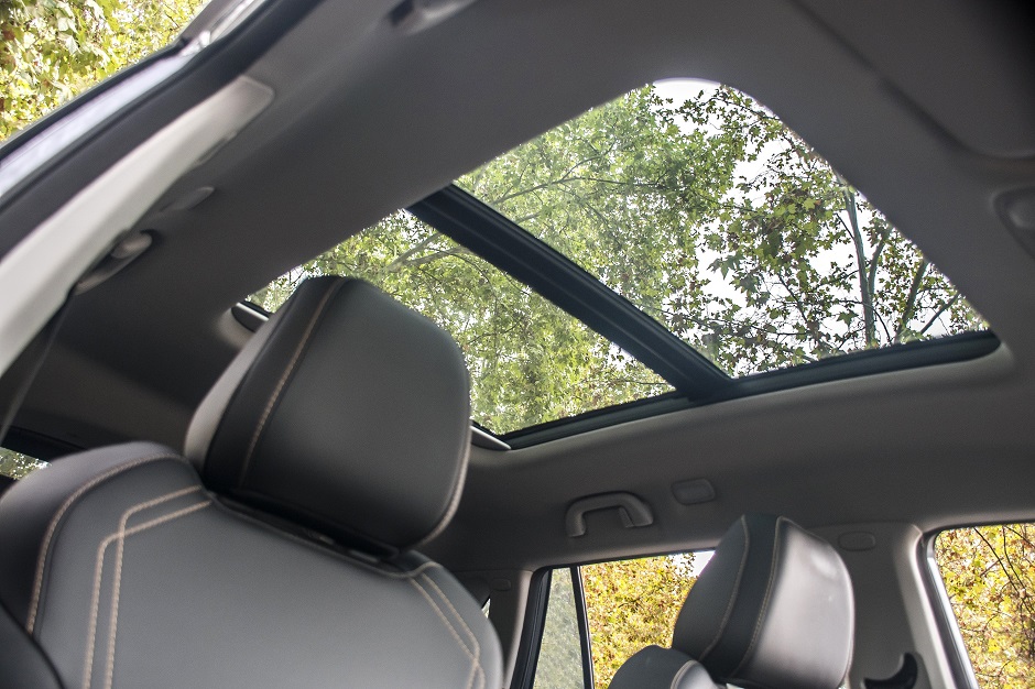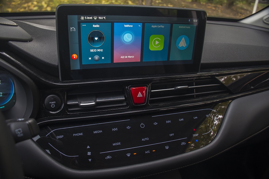 Su equipamiento incluye asientos de cuero con ajuste eléctrico y calefacción para el conductor, climatizador, selector de marchas giratorio, panel de instrumentos LCD de 10,25” que permite al conductor elegir entre tres estilos de diseño, pantalla central flotante de alta definición de 10,25” con conectividad para Apple CarPlay y Android Auto que destaca por su excelente capacidad responsiva; salidas de aire para las plazas traseras, techo panorámico con sunroof, luces diurnas, faros led, sistema Follow Me Home, kit eléctrico completo (cierre centralizado, además de espejos y alzavidrios eléctricos) y volante multifunción forrado en cuero.