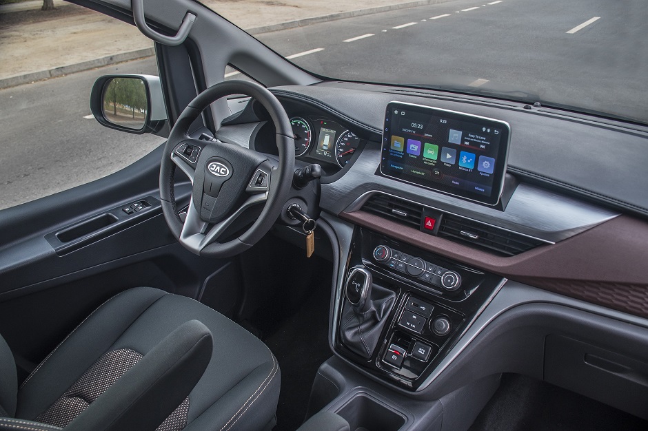 Para hacer más eficientes las entregas y ofrecer mayor confort a sus ocupantes, el JAC Refine EV cuenta además con asientos ergonómicos de tela -los que han sido desarrollados pensando en largas jornadas a bordo del vehículo- volante multifunción, pantalla multimedia de 10” con conectividad para Apple CarPlay y Android Auto, alzavidrios eléctricos con sistema “One Touch”, aire acondicionado, Auto Hold, control crucero, doble airbag frontal, control electrónico de estabilidad (ESC), sensores y cámara de retroceso, además de monitor de presión de neumáticos (TPMS), entre otros.