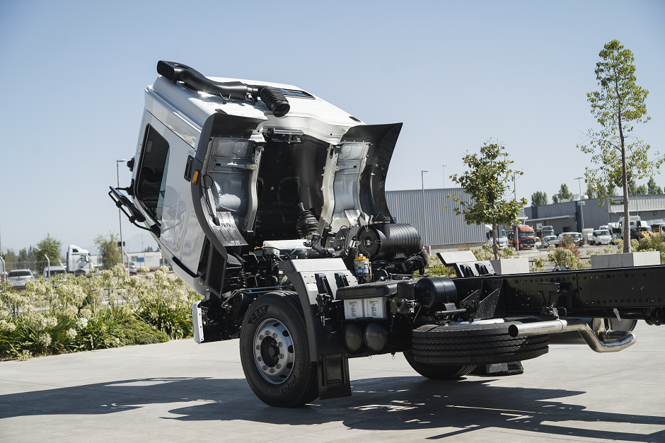 Por su parte, la cabina se caracteriza por su amplitud, la cual incluye media litera y asiento de conductor con suspensión neumática. Además, exhibe un diseño aerodinámico para una mayor eficiencia, columna colapsable y barra de acero en las puertas, brindando una gran seguridad al manejar.