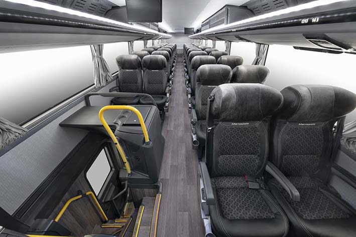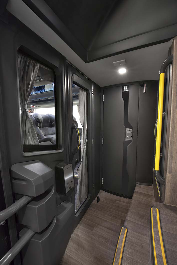 Conscientes que la seguridad sanitaria sigue siendo un imperativo, la nueva generación Marcopolo incluye pasamanos de las escaleras con revestimiento antimicrobiano, mismo material que está presente en los soportes del sanitario, que también ofrece la opción de instalar un sistema de desinfección biológica mediante luz ultravioleta (UV-C), que elimina hasta el 99,9% de los virus y bacterias presentes en el ambiente.