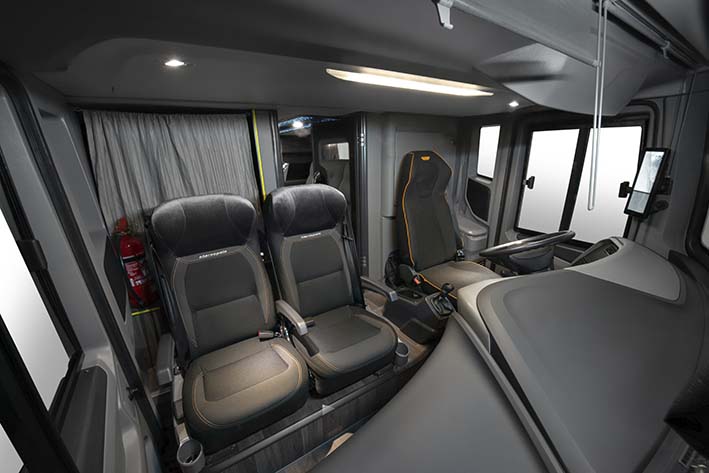 La cabina del conductor ha sido rediseñada pensando en ofrecer la máxima experiencia de comodidad. El asiento Ergodesign, con espuma en forma de caparazón, sumado a los paneles y revestimientos internos con concepto soft touch, generan un espacio con más confort termoacústico y visual.