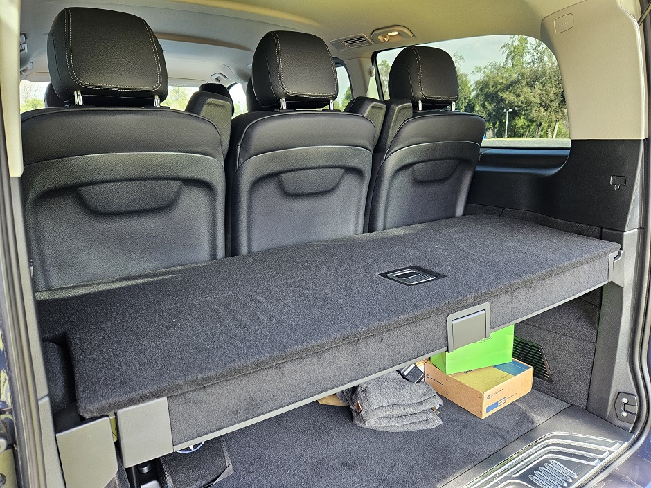 La V-Class 2024 está equipada con un arsenal de tecnologías que optimizan la seguridad y la comodidad de cada ocupante y el conductor. Por ejemplo, el asistente de distancia DISTRONIC, permite mantener una distancia segura del vehículo delantero, demostró ser extremadamente eficiente en nuestra prueba en ruta, ya que en un momento de distracción involuntaria o bien como una configuración de seguridad, impide a ciencia cierta una colisión con otro vehículo de forma autónoma. Otro punto que opera, es el sistema de control de ángulo muerto y la cámara de estacionamiento de 360° que proporcionan una visibilidad completa alrededor del vehículo, simplificando las maniobras en espacios reducidos y aumentando la seguridad durante el estacionamiento. El portalón trasero Easy Pack facilita el acceso al maletero con un sistema de apertura y cierre automático, una característica muy apreciada para la carga y descarga rápida, además se abre en dos secciones, manualmente el parabrisas trasero, sin levantar todo el portalón, o bien todo el portalón para acceder a la maleta totalmente.